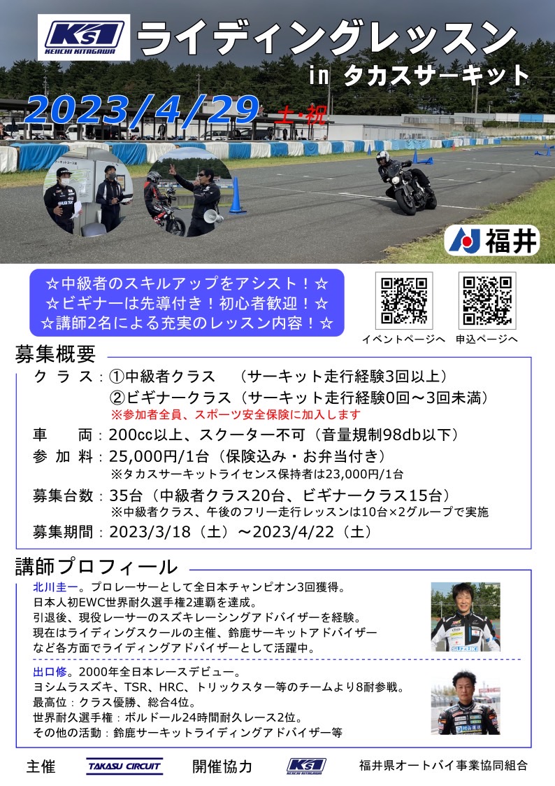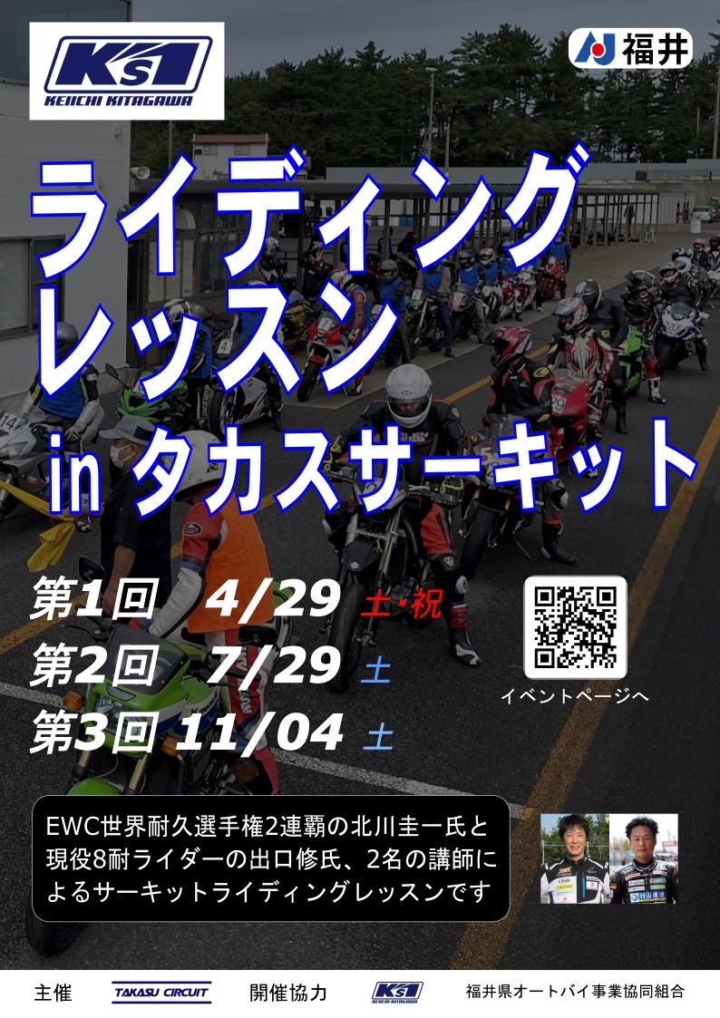 ライディングレッスンinタカスサーキット 2023年7月29日開催!