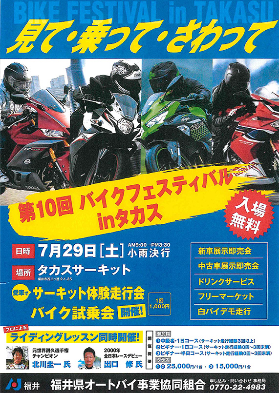 ライディングレッスンinタカスサーキット 2023年7月29日が近づいてきました!